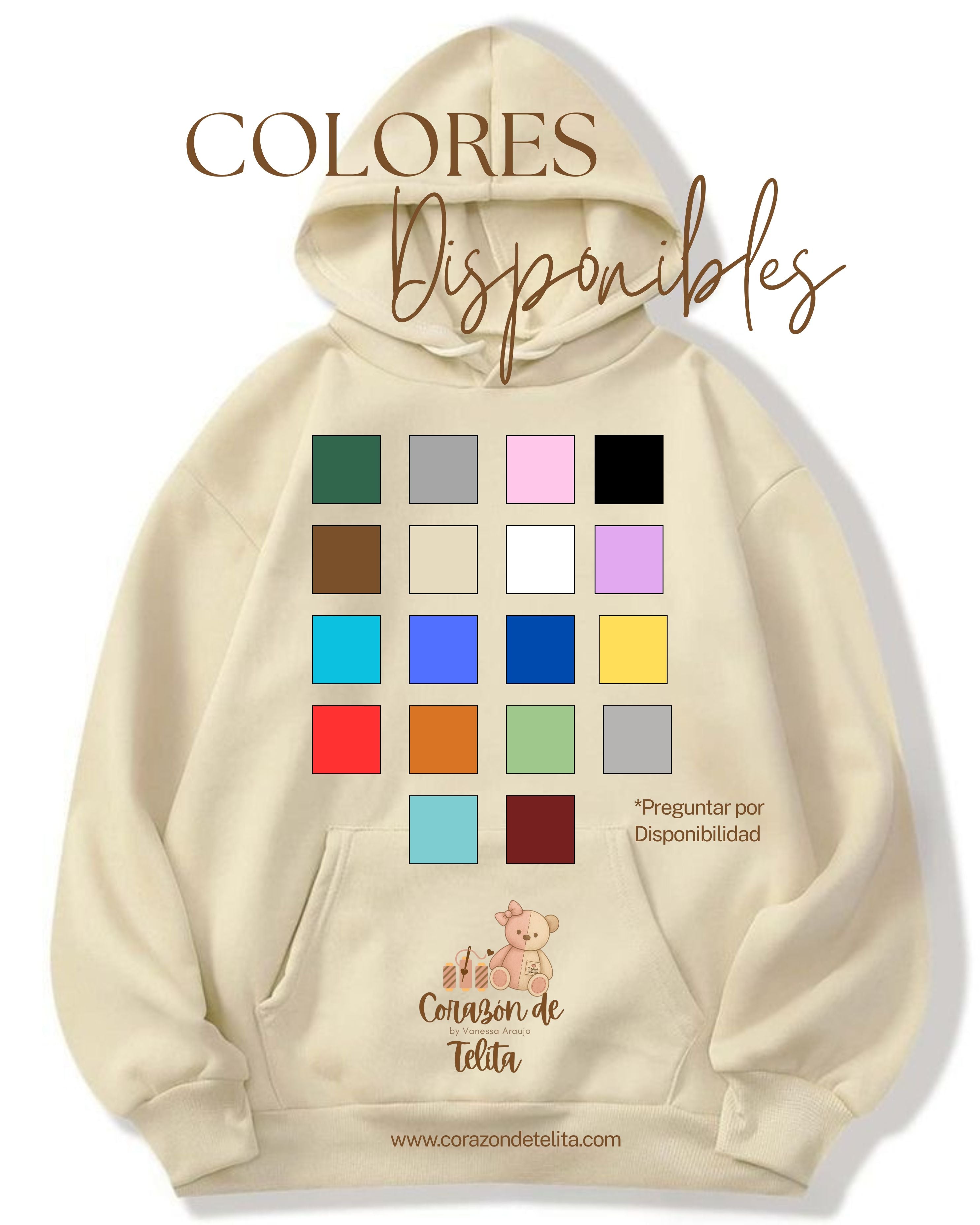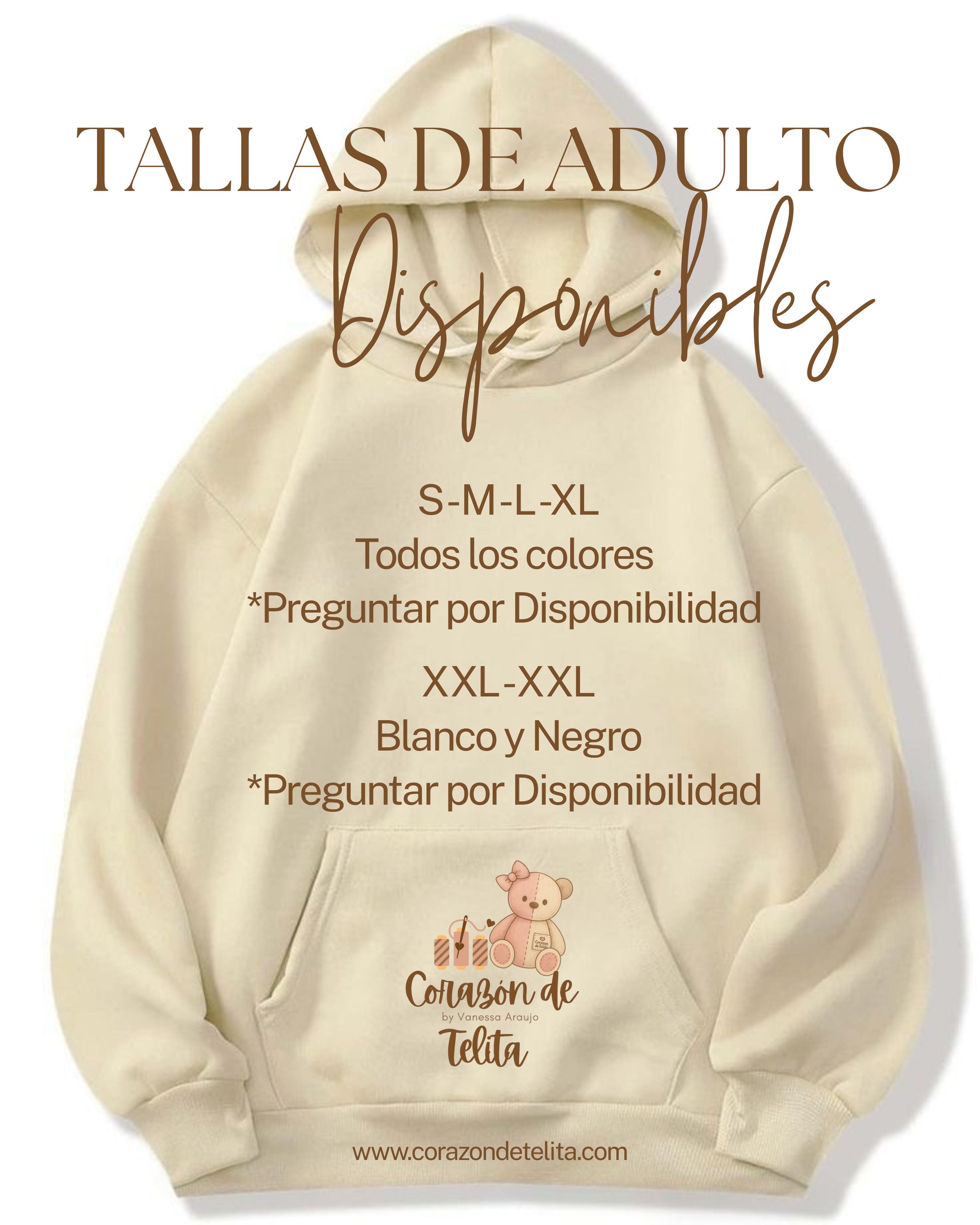 Le dejamos nuestra guía de tallas y colores disponibles para elaborar sus sudaderos memoriales personalizados, creados con amor y respeto por cada historia.